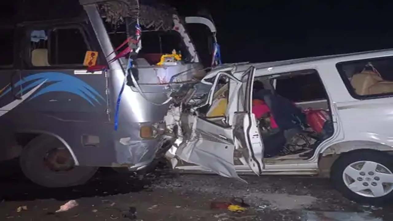 बस और टवेरा कार की आमने सामने भिड़ंत
