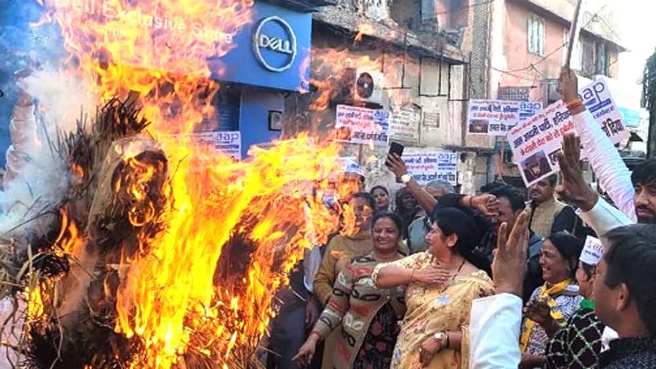 आम आदमी पार्टी ने फूंके मोदी,अडानी के पुतले