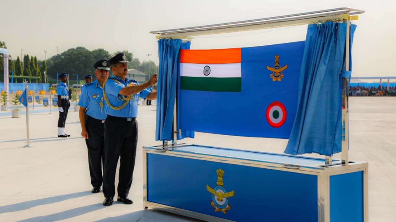 बमरौली,प्रयागराज : वायु सेना को 92 वें स्थापना दिवस पर रविवार को यहां नया ध्वज मिल गया जिसके साथ ही यह दिन वायु सेना के इतिहास में ऐतिहासिक दिन के रूप में दर्ज हो गया। इस तरह नौसेना के बाद वायु सेना को नया ध्वज मिल गया है। नौसेना ने भी पिछले वर्ष ही नया ध्वज अपनाया था। वायु सेना प्रमुख एयर चीफ मार्शल वी आर चौधरी ने वायु सेना की 91 वीं वर्षगांठ के मौके पर यहां आयोजित भव्य समारोह में नये वायु सेना ध्वज का अनावरण किया। इस मौके पर वायु सेना की ताकत और मारक क्षमता का प्रदर्शन करते हुए भव्य परेड निकाली गयी।