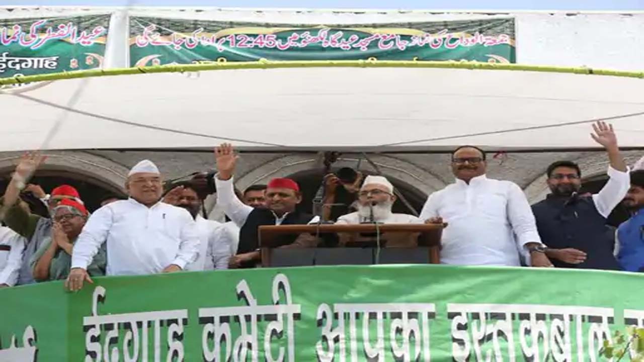 लखनऊ ईदगाह में एक मंच पर अखिलेश और ब्रजेश पाठक
