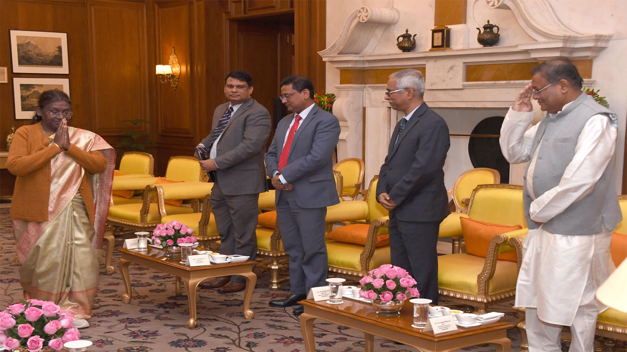 नई दिल्ली : डॉ. हसन महमूद ने शुक्रवार को यहां राष्ट्रपति भवन में राष्ट्रपति द्रौपदी मुर्मु से मुलाकात की। राष्ट्रपति भवन की एक विज्ञप्ति के अनुसार डॉ. महमूद का स्वागत करते हुए, राष्ट्रपति ने प्रधानमंत्री शेख हसीना को बंगलादेश के प्रधानमंत्री के रूप में उनके अभूतपूर्व लगातार चौथे कार्यकाल के लिए शुभकामनाएं दीं। मुर्मु ने विश्वास जताया कि सुश्री शेख हसीना के नेतृत्व में बंगलादेश प्रगति और समृद्धि के नए मील के पत्थर स्थापित करेगा।