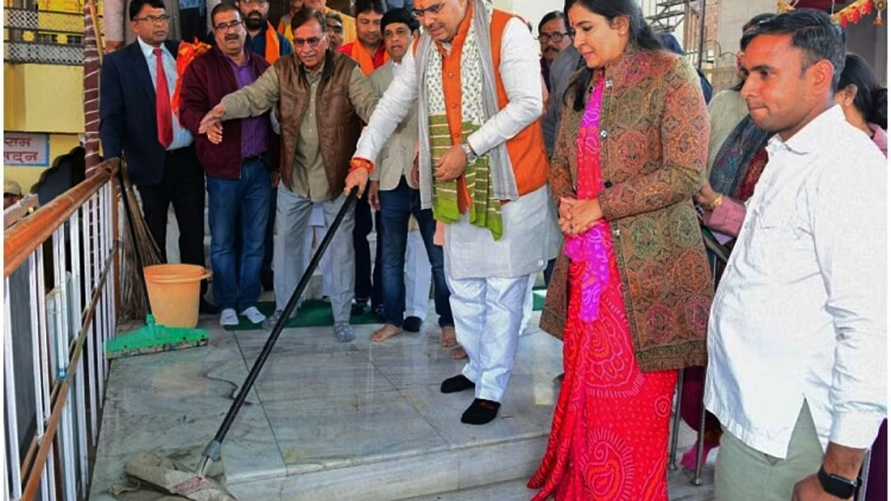 जयपुर : भजनलाल शर्मा ने रविवार को जयपुर में मानसरोवर के हंस विहार मंदिर में ‘‘स्वच्छ मंदिर‘‘ अभियान की शुरूआत की। शर्मा ने प्रधानमंत्री नरेंद्र मोदी द्वारा मकर संक्रान्ति पर्व से सभी तीर्थ स्थलों में साफ-सफाई के आह्वान को आगे बढ़ाते हुए मंदिर परिसर में सफाई की। उन्होंने प्रदेशवासियों को स्वच्छता का संदेश देते हुए श्रद्धालुओं और स्थानीय लोगों से भी मंदिरों में सफाई का विशेष ध्यान रखने के लिए भी अपील की। इससे पूर्व श्री शर्मा ने मंदिर में पूजा-अर्चना कर राज्य की सुख-समृद्धि और खुशहाली के लिए कामना की। इस अवसर पर जयपुर नगर निगम ग्रेटर महापौर सौम्या गुर्जर सहित अन्य जनप्रतिनिधि और क्षेत्रवासी मौजूद थे।