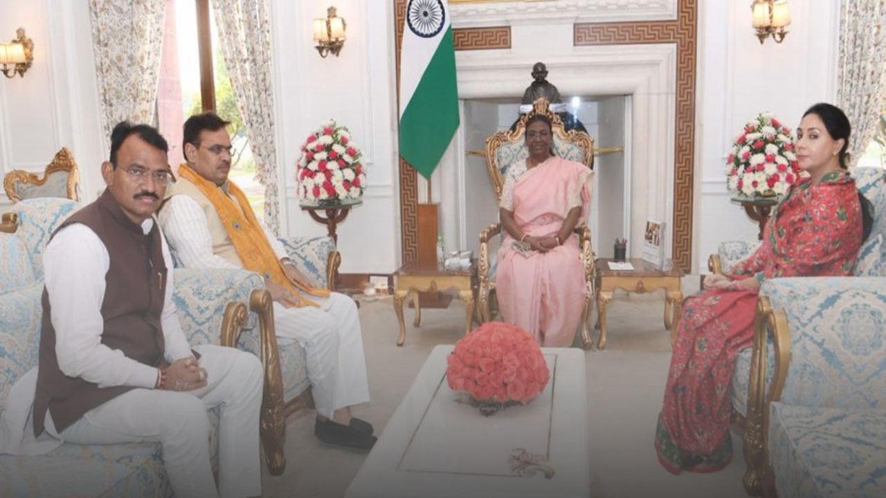 जयपुर : द्रौपदी मुर्मू से राजस्थान के मुख्यमंत्री भजन लाल शर्मा ने रविवार को मुलाकात की । मुर्मू से शर्मा ने नई दिल्ली में यह मुलाकात की जो उनकी यह शिष्टाचार भेंट थी। शर्मा ने रक्षामंत्री राजनाथ सिंह से भी मुलाकात की जो उनकी यह शिष्टाचार भेंट थी। शर्मा राजस्थान के मुख्यमंत्री बनने के बाद पहली बार दिल्ली दौरे पर गए हैं।