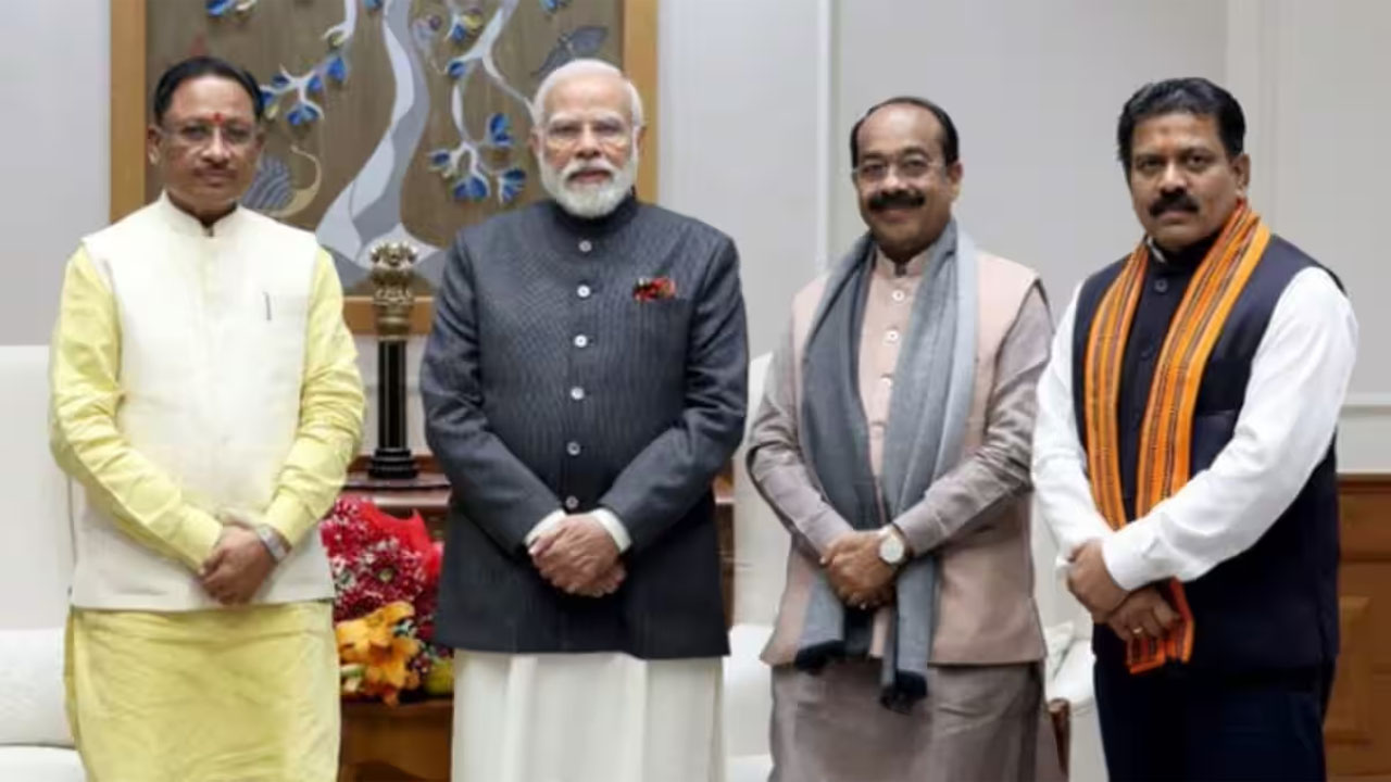 नई दिल्ली : विष्णु देव साय ने शनिवार को यहां प्रधानमंत्री नरेंद्र मोदी से मुलाकात की। श्री साय ने श्री मोदी से उनके आवास 7 , लोक कल्याण मार्ग पर भेंट की। उनके साथ छत्तीसगढ़ के उपमुख्यमंत्रीद्वय अरूण साव और विजय शर्मा भी थे। प्रधानमंत्री कार्यालय ने एक्स पर अपने पोस्ट में भी यह जानकारी साझा की। इससे पहले श्री साय और दो उपमुख्यमंत्रियों ने उपराष्ट्रपति जगदीप धनकड़ से भी उनके आवास पर मुलाकात की। गौरतलब है कि छत्तीसगढ़ में कांग्रेस की सरकार को सत्ताच्युत करने के बाद भारतीय जनता पार्टी ने फिर से अपनी सरकार बनायी है और श्री साय इस सरकार के मुखिया बनाये गये हैं। श्री साय ने एक दिन पहले शुक्रवार को अपने मंत्रिमंडल का विस्तार करते हुए नौ मंत्रियों को शामिल किया है।