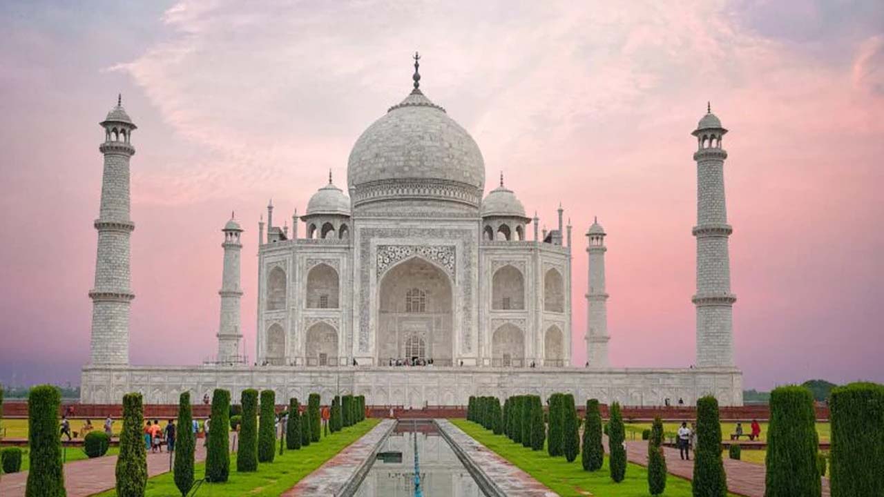क्रिकेट वर्ल्ड कप की ट्रॉफी लायी गयी ताजमहल