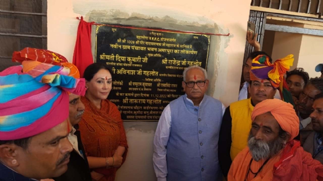 राजसमंद : राजसमंद की सांसद दीया कुमारी ने कहा की आत्मनिर्भर भारत के निर्माण के लिए शहरी क्षेत्र के साथ ही ग्रामीण क्षेत्र का विकसित और आत्मनिर्भर होना अत्यन्त आवश्यक है। सांसद दीयाकुमारी आज अपने संसदीय क्षेत्र की जैतारण विधानसभा के ग्राम पंचायत अमरपुरा में नवीन पंचायत भवन का उद्घाटन करने के बाद आयोजित कार्यक्रम को संबोधित कर रही थी। उन्हेने कहा कि स्वीकृत कार्यों से ग्रामीणों की स्थानीय समस्याओं का समाधान होगा, वहीं उन्हें ग्रामीण क्षेत्र की योजनाओं का लाभ प्राप्त करने में मदद भी मिलेगी।