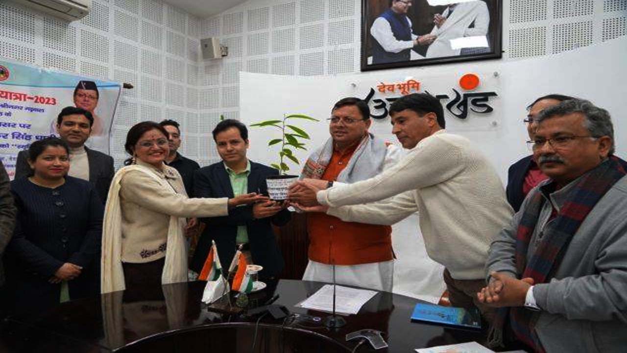 देहरादून : पुष्कर सिंह धामी ने बुधवार को अपने आवास स्थित कार्यालय में हेमवती नन्दन बहुगुणा गढ़वाल केन्द्रीय विश्वविद्यालय श्रीनगर गढ़वाल तथा कुमाऊं विश्वविद्यालय नैनीताल के स्थापना के स्वर्ण जयंती वर्ष पर आयोजित ‘स्वर्णिम अमृत संदेश रथ यात्रा’ का शुभारम्भ स्मृति पौध भेंट कर किया। इस अवसर पर यूकॉस्ट द्वारा आयोजित ‘अभिनन्दन एवं पौध भेट समारोह’ में विश्वविद्यालयों को शुभकामना देते हुए धामी ने कहा कि किसी आयोजन को यादगार बनाने में पेड़ों की बड़ी भूमिका होती है। पेड़ जहां जीवन के आधार है वहीं हमारी संस्कृति और स्मृति के भी प्रतीक हैं।