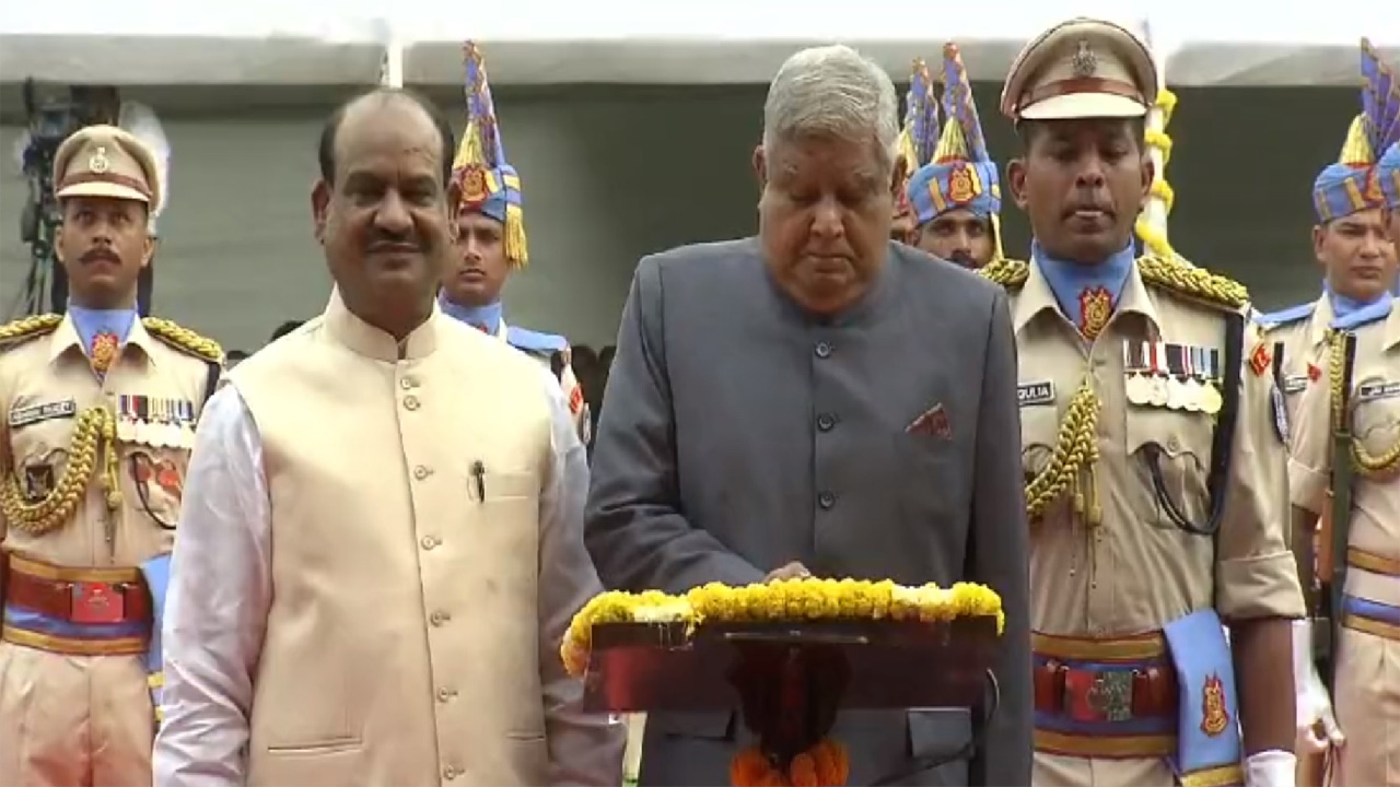 नई दिल्ली : उपराष्ट्रपति जगदीप धनखड़ ने नये संसद भवन पर रविवार को राष्ट्रीय ध्वज फहराते हुए कहा कि भारत युग परिवर्तन का साक्षी बन रहा है और दुनिया भारतीय ताकत, सामर्थ्य और योगदान को पहचान रही है। उपराष्ट्रपति और राज्यसभा के सभापति जगदीप धनखड़ ने नए संसद भवन के गज द्वार पर राष्ट्रीय ध्वज फहराया। इस अवसर पर लोकसभा अध्यक्ष ओम बिरला भी उपस्थित रहे।