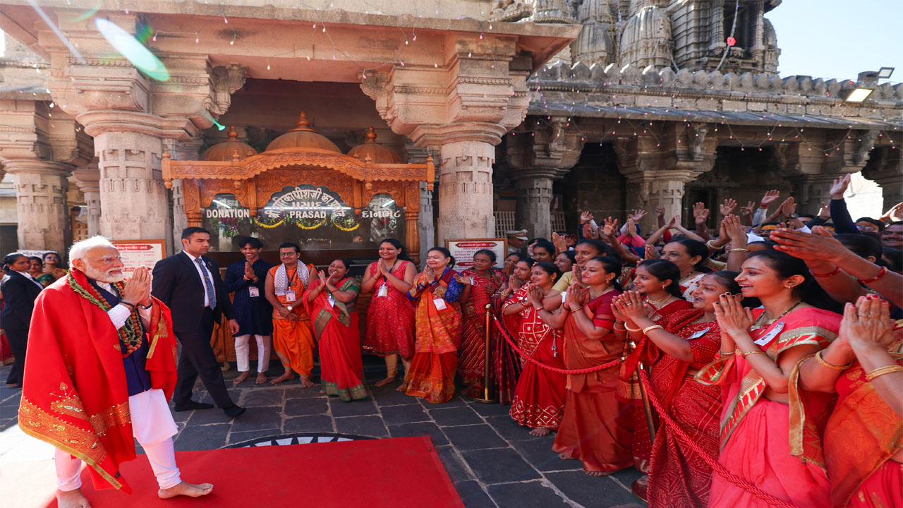 द्वारका हेलिपैड से सड़क मार्ग से जगत मंदिर में भगवान श्री द्वारकाधीश के दर्शन करने निकले श्री मोदी का मार्ग में जगह-जगह नागरिकों द्वारा अभिवादन किया गया। ओखा मंडल क्षेत्र की विशेष पहचान को उजागर करने वाले परम्परागत परिधानों से सुसज्जित ग्रामीणों के अलावा नगरजन भी मार्ग पर उनके स्वागत-सत्कार के लिए भारी संख्या में खड़े थे। कई महिलाएं गरबा नृत्य कर रही थीं, जबकि कृष्ण भक्ति के सुगम संगीत, ढोल और शहनाई की धुन के साथ खड़ा जनसमूह उनकी एक झलक देखने को आतुर था।