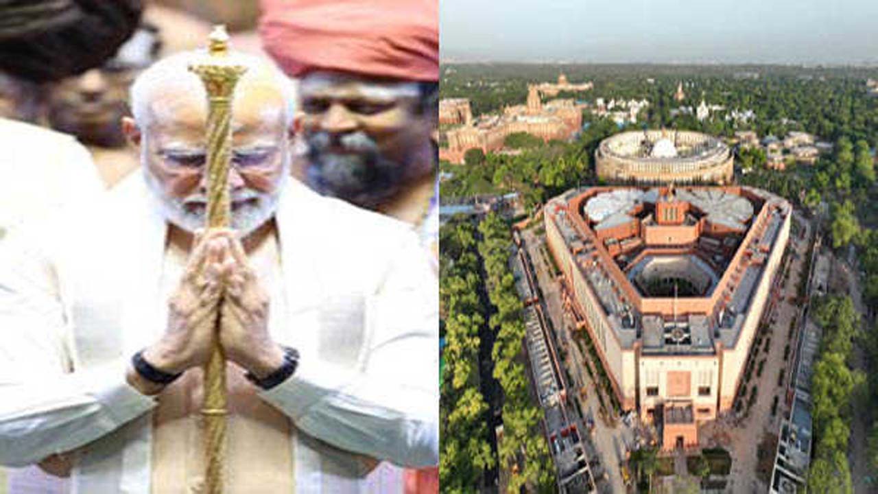नई दिल्ली : संसद भवन परिसर में स्थापित नये संसद भवन के लाेकसभा कक्ष में रविवार काे पहली बार ऐतिहासिक सेन्गोल (पवित्र राजदंड) स्थापित किया गया जो विरासत के आधुनिकता से जुड़ने का प्रतीक है। नये संसद भवन का निर्माण मात्र ढाई साल में पूरा किया गया है। इसका शिलान्यास प्रधानमंत्री नरेन्द्र मोदी ने 10 दिसंबर 2020 को किया था। नया संसद भवन 20 हजार करोड़ रुपये की लागत वाली सेंट्रल विस्टा परियोजना का हिस्सा है। इसके लोकसभा कक्ष में आवश्यकता होने पर 1280 व्यक्तियों के लिए बैठने की व्यवस्था की जा सकती है।