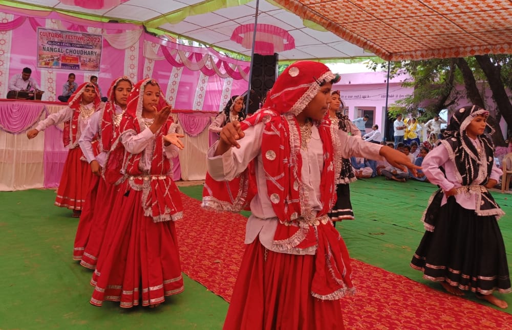 कपिल शर्मा, नाँगल चौधरी: राजकीय कन्या वरिष्ठ माध्यमिक विद्यालय में मंगलवार को खण्ड स्तरीय प्रतियोगिता के अंतर्गत सांस्कृतिक समारोह का आयोजन किया गया। जिसमें विभिन्न गाँव की 52 स्कूलों के 220 बच्चों ने भाग लिया। इसमें रा.क.व.मा.वि. नांगल चौधरी, आरोही मॉडल स्कूल मण्ढाणा, रा.उ.वि. मुलौदी, रा.व.मा.वि. नायन, रा.व.मा.वि सिरोही बहाली, रा.व.मा. विद्यालय नांगल चौधरी और नाँगल दर्गु से रा.व.मा.विद्यालय के शिक्षक निर्णायक मंंडल सदस्य शामिल हुए।
