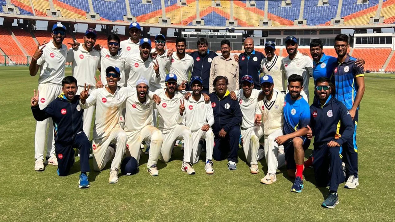 अहमदाबाद : स्पिनर सिद्धार्थ देसाई सात विकेट की बदौलत रणजी ट्रॉफी में एलिट ग्रुप-सी के रोमांचक मुकाबले में गुजरात ने कर्नाटक को छह रन से दिया है। चौथी पारी में कर्नाटक के सामने जीत के लिए महज 109 रनों का लक्ष्य था लेकिन गुजरात के गेंदबाजों ने शानदार प्रदर्शन करते हुए कर्नाटक को 103 रन पर समेट दिया। हालांकि एक समय कर्नाटक की टीम ने बिना विकेट खोए 50 रन बना लिये। उसके बाद गुजरात के स्पिनर सिद्धार्थ देसाई ने सात विकेट लेकर में कर्नाटक को ऑलआउट कर दिया।