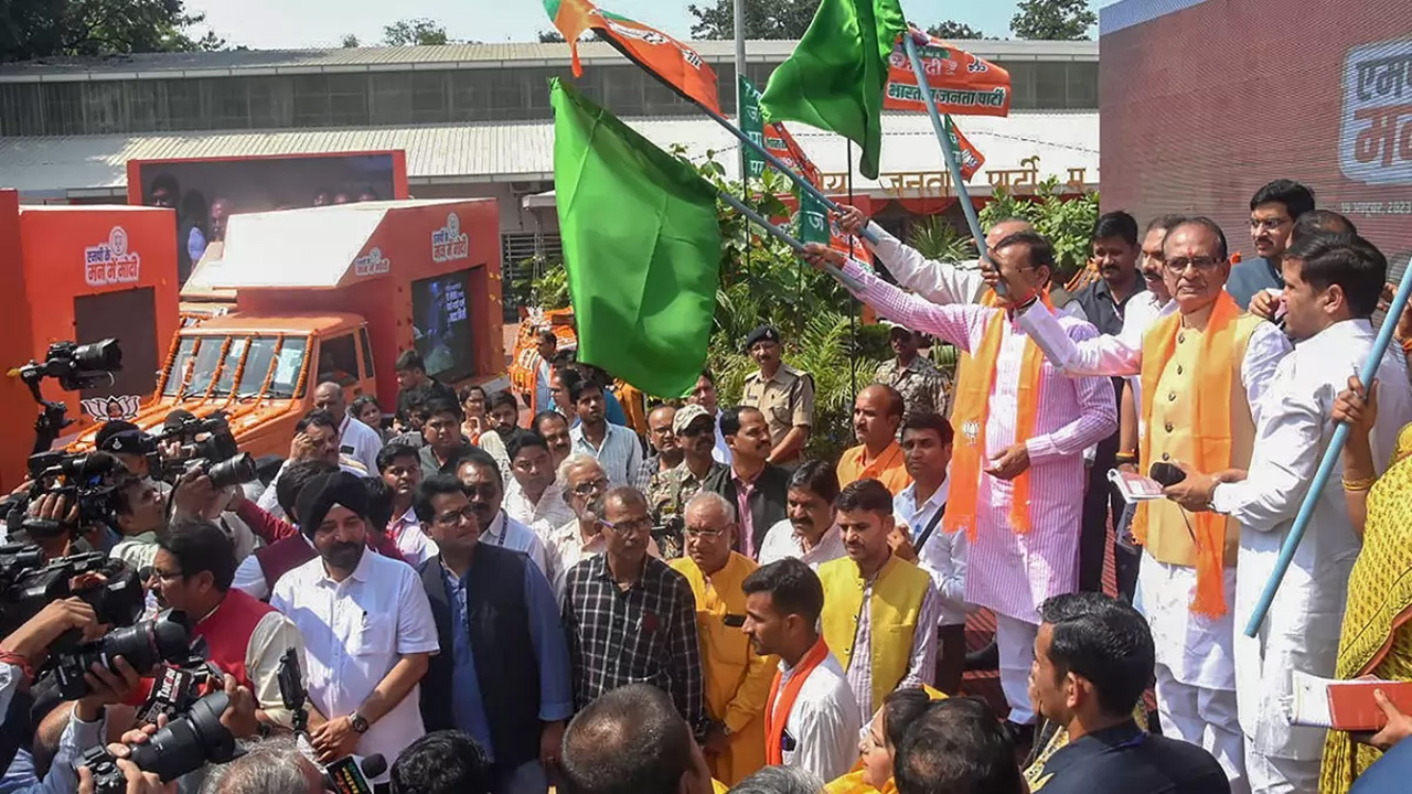 भोपाल : मध्यप्रदेश में सोलहवीं विधानसभा के गठन के लिए चुनाव में प्रचार के लिए सत्तारूढ़ दल भारतीय जनता पार्टी (भाजपा) ‘हाईटेक रथों’ का सहारा ले रही है और ये सभी 230 विधानसभा क्षेत्रों में जाएंगे। मुख्यमंत्री शिवराज सिंह चौहान और प्रदेश भाजपा अध्यक्ष विष्णुदत्त शर्मा ने आज यहां प्रदेश कार्यालय से हाईटेक रथों को हरी झंडी दिखाकर रवाना किया।