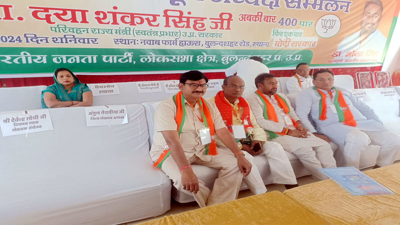 स्याना। स्याना विधानसभा में नवाब फार्म हाउस में एक बूथ सम्मेलन आयोजित किया गया जिसमें मुख्य अतिथि उत्तर प्रदेश सरकार में परिवहन विभाग के माननीय मंत्री परम आदरणीय दयाशंकर सिंह जी का रहना हुआ पूरी विधानसभा से शतप्रतिशत उपस्तिथि बूथ अध्यक्षों शक्ति केन्द्र संयोजक प्रभारी मण्डल प्रभारी मंडल अध्यक्ष विधान सभा संयोजक विधान सभा प्रभारी सभी मौजूद रहे इस मौके पर लोकसभा संयोजक स्याना विधान सभा क्षेत्र से लोकप्रिय विधायक श्रीमान देवेंद्र सिंह लोधी जी लोकसभा सहप्रभारी आदरणीय योगेंद्र सिंह जी भाजपा प्रत्याशी लोकप्रिय सांसद डाक्टर भोला सिंह जी भी मौजूद रहे डाक्टर भोला सिंह जी ने अपने लिए और माननीय प्रधानमंत्री भारत सरकार परम आदरणीय मोदी जी के लिए वोट की अपील की स्याना विधान सभा के सभी बूथ अध्यक्ष सहित सभी मंडल अध्यक्ष मंडल प्रभारी पूरी निष्ठा के साथ चुनाव में लगे हैं मेरा नरेन्द्र बंसल बुलंदशहर का मंडल प्रभारी स्याना होने के नाते बूथ सम्मेलन में रहना हुआ।