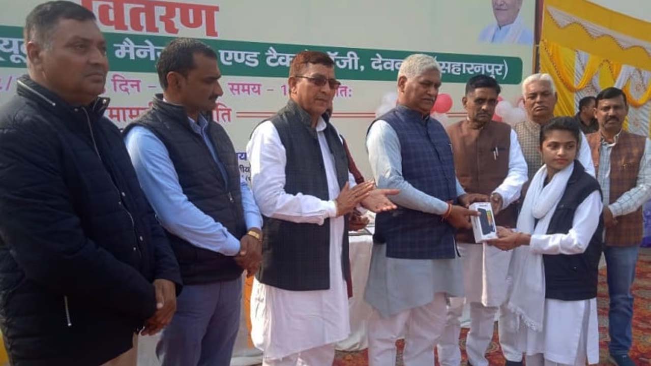 सहारनपुर : उत्तर प्रदेश के संसदीय कार्य एवं औद्योगिक राज्य मंत्री जसवंत सैनी ने आज देवबंद में दून हिल्स इंस्टीट्यूट का मैनेजमेंट एंड टेक्नोलाजी के 84 छात्र-छात्राओं को स्मार्ट फोन और टेबलेट फोन बांटे हैं और छात्रों से कहा कि वे उच्च शिक्षा प्राप्त करने में उच्च तकनीकी का इस्तेमाल करें। श्री सैनी ने कहा कि सरकार ने छात्रों को टेबलेट और स्मार्ट फोन देने का अपना वचन पूरा किया है। सरकार उच्च शिक्षा को प्रोत्साहित करने का प्रयास कर रही है। कार्यक्रम में डाॅ. चंदन सिंह राणा, पश्चिमी क्षेत्र भाजपा किसान मोर्चा के मंत्री विजय पाल सिंह, एसडीएम संजीव कुमार, पंकज त्यागी, संस्था के अध्यक्ष डा. प्रदीप वर्मा, अधिवक्ता मनोज सिंघल आदि मुख्य रूप से मौजूद रहे।
