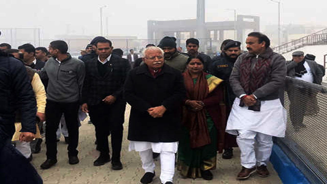 खट्टर ने करनाल में हॉकी स्टेडियम का किया निरीक्षण