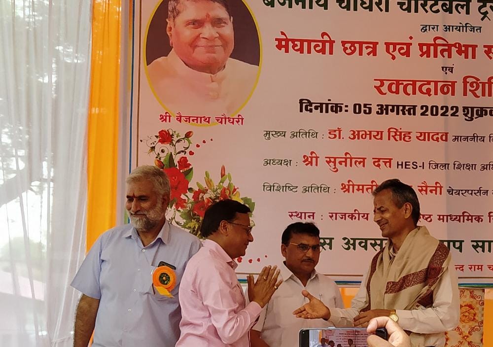 मेधावी छात्र सम्मान सम्मारोह में 48 प्रतिभाओं को कुल साढ़े चार (4.50) लाख रु. के चेक वितरित किए गए। इस कार्यक्रम के दौरान भारत विकास परिषद के सौजन्य से लगाए गए रक्तदान शिविर में ट्रस्ट द्वारा 31 हजार रुपये का चेक प्रदान किया गया। साथ ही प्रत्येक स्कूल में प्रथम आने वाले विद्यार्थी सीबीएसई दसवीं/बारवीं की टाॅपर को 11/21 हजार रुपये राशि चेक दिए गए। हरियाणा बोर्ड के तीनों संकाय कला, विज्ञान, वाणिज्य की विद्यार्थियों को 11/21 हजार रुपये राशि के साथ-साथ प्रशंसा पत्र, स्मृति चिन्ह व मेडल से सम्मानित किया गया। इसमें राजकीय बालिका वरिष्ठ माध्यमिक विद्यालय की पहली से नौवीं कक्षा तक की प्रथम आने वाली 10 छात्राओं को पारितोषिक दिया गया साथ ही राजकीय बाल वरिष्ठ माध्यमिक विद्यालय के कक्षा पहली से नौंवी के 9 छात्रों को भी पुरुस्कार से सम्मानित किया गया। इस अवसर पर समाजसेवी भामाशाह स्वर्गीय बैजनाथ चौधरी ट्रस्ट द्वार स्वतंत्रता दिवस उपलक्ष्य आजादी के 75वीं वर्षगांठ मनाने के लिए करीब चार सौ राष्ट्रीय ध्वज भी वितरित किए गए।