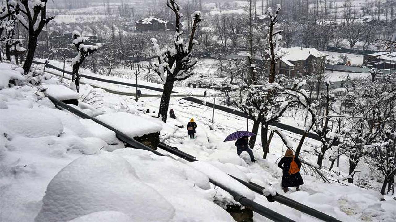 पहाड़ों पर हुई बर्फबारी से गिरा पारा