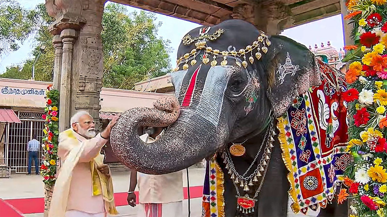 प्रधानमंत्री के पहले पड़ाव त्रिची के श्रीरंगम स्थित प्रसिद्ध श्री रंगनाथस्वामी मंदिर पहुंचने पर वहां के पुजारियों ने श्री मोदी का पारंपरिक रूप से स्वागत किया। रंगनाथस्वामी मंदिर में श्री मोदी ने विद्वानों को कंबा रामायणम के छंदों का पाठ करते हुए सुना। नागस्वरम का पाठ देखने के बाद उन्होंने इष्टदेव और उनकी पत्नी देवी रंगनायकी की पूजा की। उन्होंने मंदिर में विभिन्न सन्नाधियों का भी दौरा किया, जो भगवान विष्णु के 108 दिव्यदेसम मंदिरों में से नंबर एक है। दिव्य देशम या वैष्णव दिव्य देशम 108 विष्णु और लक्ष्मी मंदिरों में से एक है जिसका उल्लेख श्री वैष्णव परंपरा के कवि-संत अलवरों के कार्यों में किया गया है।