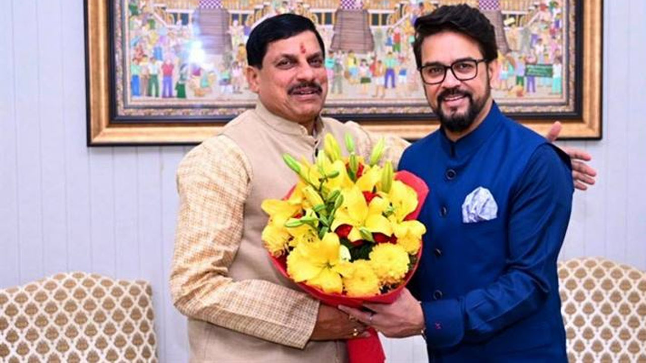 मोहन यादव की अनुराग सिंह ठाकुर से सौजन्य भेंट