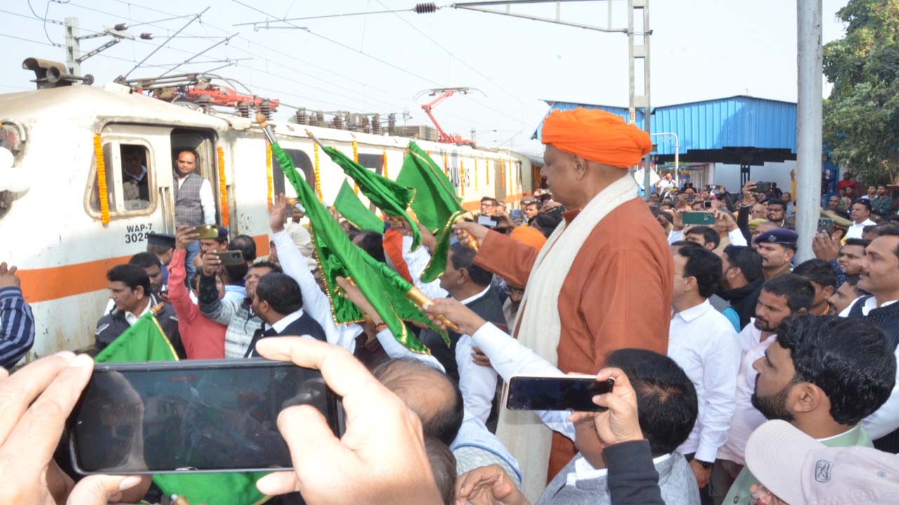 सांसद ने बलिया रेलवे स्टेशन से हरी झंडी दिखाकर कामायनी एक्सप्रेस को रवाना किया