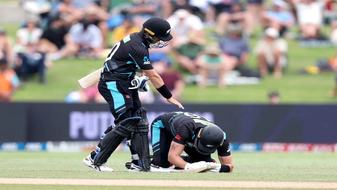 न्यूजीलैंड की ओर से कप्तान मिचेल सेंटनर ने चार ओवर में 16 रन देकर चार बल्लेबाजों को आउट किया। टिम साउदी, बेन सियर्स और एडम मिल्ने को एक-एक विकेट मिला। 111 रनों के लक्ष्य का पीछा करने उतरी न्यूजीलैंड की पारी की शुरुआत बेहद खराब रही। एक समय न्यूजीलैंड ने 49 रन पर पांच विकेट गंवा दिए थे। उसके चार खिलाड़ी एक-एक रन बनाकर आउट हुये। उसके बाद कप्तान सेंटनर ने जिमी नीशम के साथ पारी को संभाला।