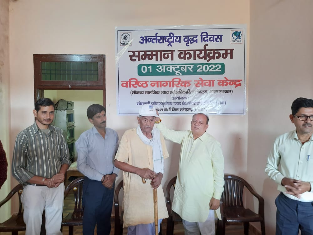 अंतर्राष्ट्रीय वृद्ध दिवस पर बुजुर्गों को टोपी पहना किया सम्मानित