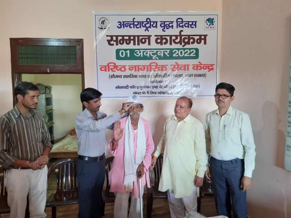 नांगल चौधरी। सोसायटी फाॅर एजुकेशन एण्ड वेलफेयर एक्टिविटीज़ सेवा द्वारा चलाया जा रहा ‘सेवा सीनियर सिटीजन होम’ में शनिवार को अन्तर्राष्ट्रीय वृद्ध दिवस के अवसर पर वृद्ध सम्मान कार्यक्रम का आयोजन किया गया। इस कार्यक्रम की अध्यक्षता रविन्द्र चौधरी ने कीी साथ ही इस अवसर पर समाज सेवी एवं हिन्दी अध्यापक जसवन्त सिंह बतौर मुख्य अतिथि स्वरूप उपस्थित हुए।