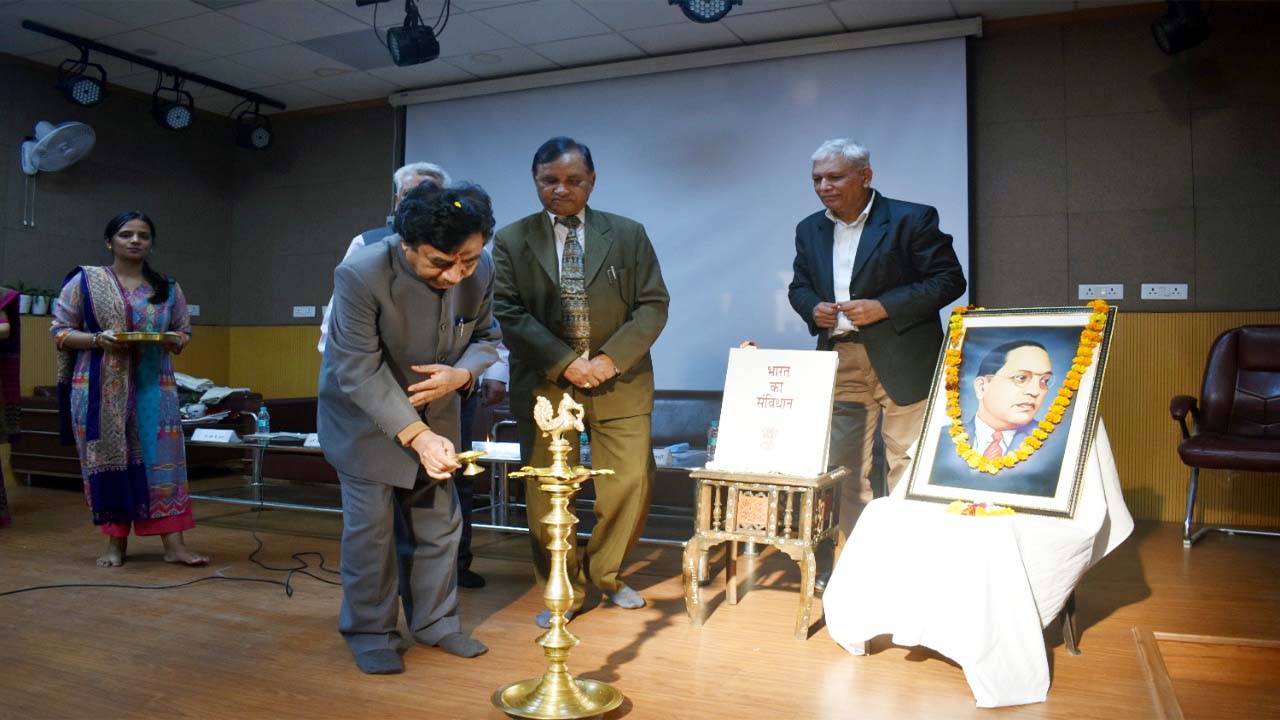 बाबा साहेब ने संविधान के निर्माण करते समय समाज के न केवल वंचित वर्ग को अधिकार प्रदान किये बल्कि समाज के प्रत्येक व्यक्ति के हितों को इसमें समाविष्ट किया है; जैसे महिलाओं को मातृत्व अवकाश, महिलाओं के लिए समान कार्य समान वेतन, सभी नागरिकों को 18 वर्ष की आयु में मतदान का अधिकार आदि । संविधान की प्रस्तावना की विस्तृत चर्चा करते हुए उन्होंने बताया कि हमारा संविधान भारत के सभी नागरिकों को जम्मू कश्मीर से कन्याकुमारी एवं गुजरात से अरुणाचल प्रदेश तक सभी को बिना भेदभाव के समान अधिकार प्रदान करता है और यह हमारे देश को एक प्रभुसत्ता सम्पन्न, समाजवादी, धर्म-निरपेक्ष, लोकतंत्रात्मक गणराज्य के रूप में स्थापित करता है। अंत में उन्होंने श्रोताओं से कहा कि हमारा संविधान विश्व का एक सुंदर, प्रिय एवं अद्भुत संविधान है, इसे सभी को अधिक से अधिक पढ़ना चाहिए सभी भारतियों को इसका अध्ययन करना चाहिए।