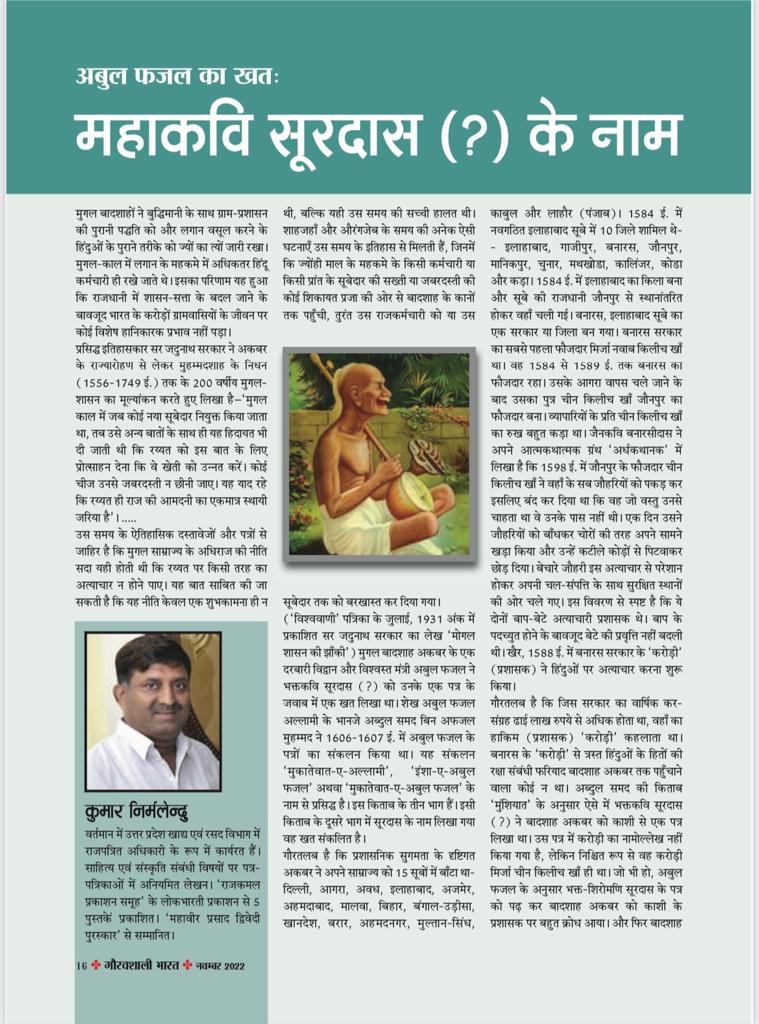 • अबुल फजल का खत: महाकवि सूरदास (?) के नाम
