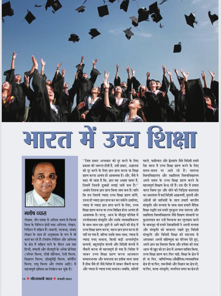 ‘‘जिस प्रकार अन्धकार को दूर करने के लिए प्रकाश की जरूरत होती है, उसी प्रकार, अज्ञानता को दूर करने के लिए ज्ञान प्राप्त करना या शिक्षा ग्रहण करना अत्यंत ही आवश्यक है। और, वैसे ये कहा भी जाता है कि, ज्ञान वह अथाह स़ागर है, जिसमें जितनी डुबकी लगाई जायें कम हैं।’’ अर्थात जितना ज्ञान प्राप्त किया जाय कम है। यानि कि हम जितनी ज्यादा उच्च शिक्षा ग्रहण करेंगे, उतना ही ज्यादा ज्ञान प्राप्त कर कर सकेंगे। इसलिए, ज्यादा से ज्यादा ज्ञान प्राप्त करने के लिए, उच्च शिक्षा ग्रहण करना या उच्च शिक्षित होना अत्यंत ही आवश्यक है। परन्तु, आज के मौजूदा परिवेश में उपभोक्तावाद संस्कृति और उसके व्यवसायिकरण के साथ-साथ एक-दूसरे से आगे बढ़ने की होड़ में उच्च शिक्षा ग्रहण करना, महज ज्ञान प्राप्त करना ही नहीं रह गया है, बल्कि उसके साथ-साथ, ज्यादा से ज्यादा रुपए कमाना, किसी बड़ी अन्तर्राष्ट्रीय कम्पनी, बहुराष्ट्रीय कंपनी और विदेशी कंपनी में नौकरी करना भी महत्वपूर्ण हो गया है। विदेश में जाकर उच्च शिक्षा ग्रहण करना आजकल सम्मानजनक और सफलता का प्रतीक माना जाता है ठीक वैसे ही जैसे विदेश में जाकर नौकरी करना और ज्यादा से ज्यादा रुपए कमाना। जबकि, सदियों पहले, फाहियान और ह्वेनसांग जैसे विदेशी हमारे देश भारत में उच्च शिक्षा ग्रहण करने के लिए समय-समय पर आते रहे हैं। हैं। नालन्दा विश्वविद्यालय और तक्षशिला विश्वविद्यालय अपने समय के उच्च शिक्षा ग्रहण करने के महत्वपूर्ण शिक्षण केन्द्र रहें हैं। उस दौर में हमारा भारत विश्व गुरु और सोने की चिड़िया कहलाता था। कालांतर में कई विदेशी आक्रमणों, मुगलों और अंग्रेजों की साजिशों के तहत हमारी भारतीय संस्कृति और सभ्यता के साथ-साथ हमारी वैदिक शिक्षा पद्धति एवं हमारे गुरुकुल तथा नालन्दा और तक्षशिला विश्वविद्यालय जैसे शिक्षण संस्थानों पर कुठाराघात कर उन्हें विध्वन्स कर लुप्तप्राय करने के बावजूद भी हमारे देशवासियों ने अपनी सभ्यता और संस्कृति को बरकरार रखते हुए विदेशी संस्कृति और विदेशी शिक्षा को सहजता से अपनाकर अपनी सहिष्णुता का परिचय देते हुए, अपने ज्ञान का विस्तार किया और हमेशा की तरह आज भी खुद को हर क्षेत्र में अव्वल साबित किया, उच्च शिक्षा ग्रहण कर।