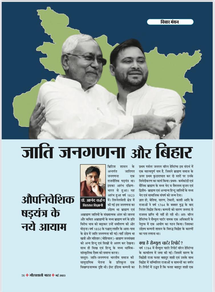 जाति जनगणना और बिहार औपनिवेशिक षड़यंत्र के नये आयाम