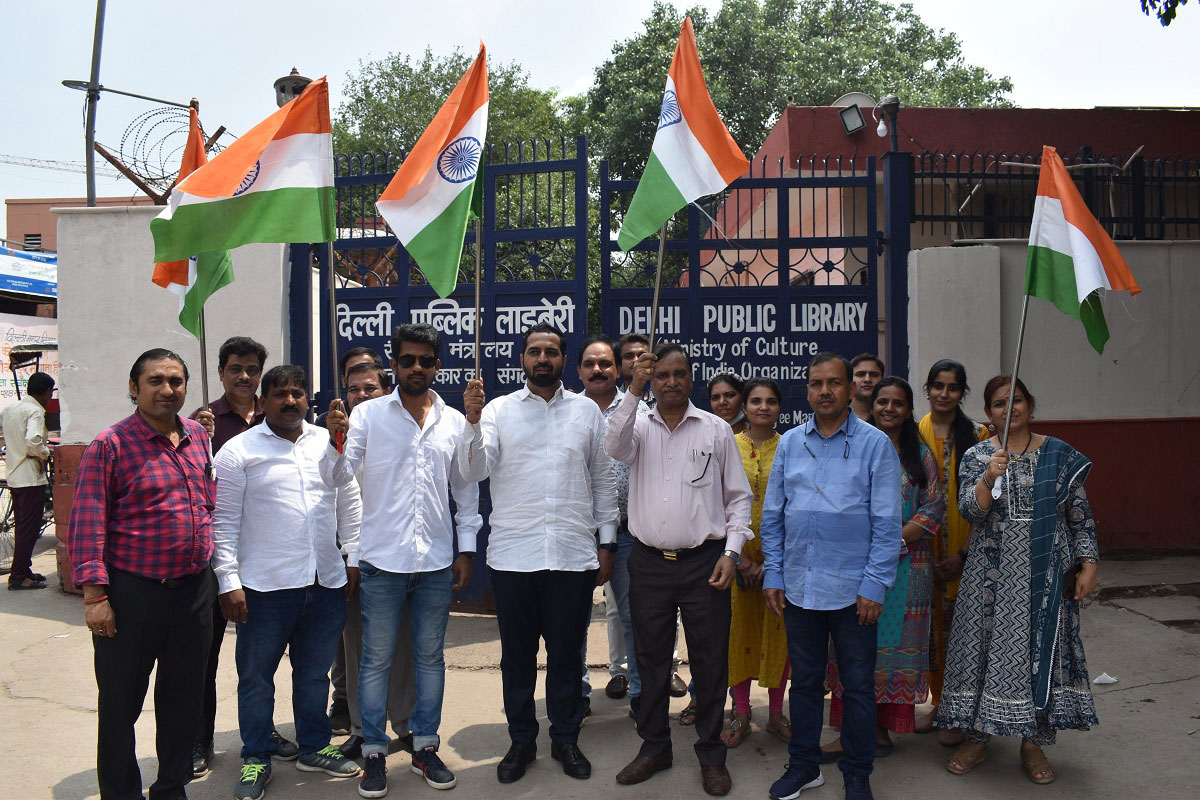 दिल्ली लाइब्रेरी बोर्ड के उपाध्यक्ष, परीक्षित डागर तथा दिल्ली लाइब्रेरी बोर्ड के सदस्य दानिश इकबाल की उपस्थिति में स्टाफ-सदस्यों द्वारा तिरंगा लहराकर सचल पुस्तकालय बसों द्वारा ‘हर घर तिरंगा अभियान’ हेतु दिल्ली के ग्रामीण क्षेत्रों में प्रचार किया गया |