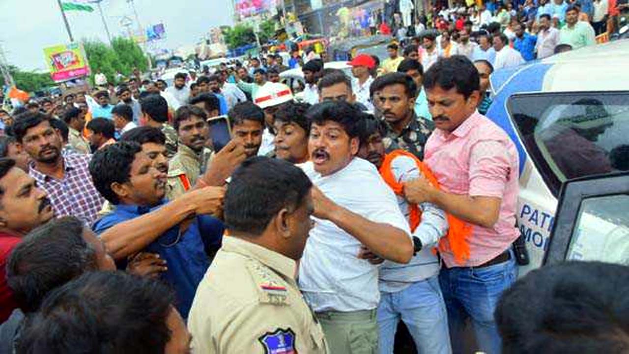 हैदराबाद : तेलंगाना की राजधानी हैदराबाद के लकड़ीकापुल में स्कूल शिक्षा आयुक्त कार्यालय के विद्या स्वयंसेवकों के साथ धरना प्रदर्शन कर रहे भारतीय जनता पार्टी (भाजपा) के विधायक रघुनंदन राव को सोमवार को पुलिस ने गिरफ्तार कर लिया। यह प्रदर्शन विद्या स्वयंसेवकों के पदों के नवीनीकरण की मांग को लेकर किया। विद्या स्वयंसेवकों ने अपने अनुबंध के नवीनीकरण और तीन महीने के लंबित वेतन के निपटान के लिए स्कूल शिक्षा आयुक्त कार्यालय के सामने सड़क पर शांतिपूर्ण विरोध प्रदर्शन किया। भाजपा विधायक विधायक रघुनंदन राव विद्या स्वयंसेवकों के साथ विरोध प्रदर्शन में शामिल हुए। प्रदर्शन के दौरान पुलिस और विद्या स्वयंसेवकों के बीच हुई बहस से तनाव बढ़ गया। इस बीच पुलिस ने श्री रघुनंदन राव को हिरासत में ले लिया और बाद में उन्हें नामपल्ली पुलिस थाना ले जाया गया।