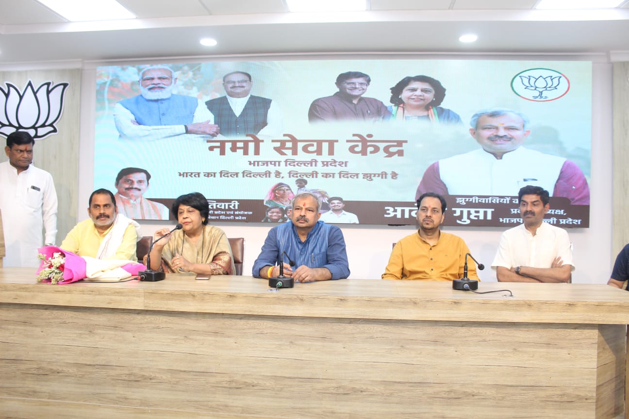 भारतीय जनता पार्टी के प्रदेश अध्यक्ष आदेश गुप्ता ने कहा कि झुग्गी कॉलोनियों में रह रहे अपने सभी भाई-बहनों के लिए भाजपा हमेशा ही कटिबद्ध है। झुग्गी सम्मान यात्रा के दौरान हमने पाया कि प्रधानमंत्री नरेन्द्र मोदी की जनकल्याणकारी योजनाओं का लाभ नहीं पहुंचा पा रहा था जिसको ध्यान में रखते हुए हमने नमो सेवा केंद्र खोलने का निश्चय किया। आज प्रदेश कार्यालय में नमो सेवा केंद्र के कुछ केंद्र के संचालकों को लैपटॉप, प्रिंटर, कीबोर्ड, सहित अन्य जरूरी सामग्रियों के वितरण करने के मौके पर श्री गुप्ता ने कहा कि नमो सेवा केंद्र के माध्यम से किसी भी रेहड़ी पटरी वालों को लोन दिलाने एवं झुग्गी में रहने वालों की मदद करने के भाव से यह केंद्र खोले गये हैं।