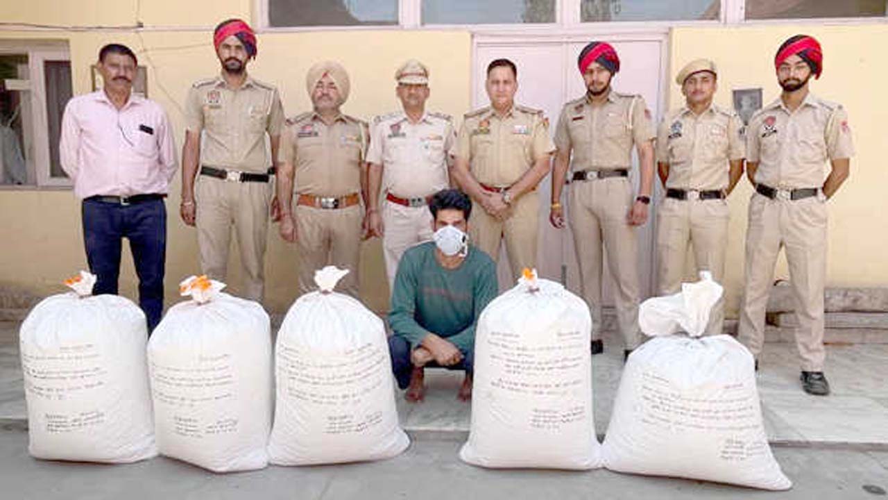 पठानकोट : पंजाब में पठानकोट पुलिस सोमवार जम्मू-कश्मीर से एक ट्रक में पंजाब चूरा-पोस्त ला रहे एक ड्रग तस्कर को गिरफ्तार कर उसके कब्जे से 100 किलोग्राम चूरा पोस्त जब्त किया है। आरोपी की पहचान जम्मू-कश्मीर के रियाज अहमद शेर गुरी के रूप में हुई है। इस महीने पठानकोट पुलिस द्वारा दूसरी बड़ी बरामदगी है, इससे पहले पुलिस ने जम्मू-कश्मीर से पंजाब आ रही 207 किलोग्राम भूकी बरामद कह थी। प्रेस कांफ्रेंस के दौरान पठानकोट के वरिष्ठ पुलिस अधीक्षक हरकमल प्रीत सिंह खख ने कहा कि थाना प्रभारी सुजानपुर अनिल पवार के नेतृत्व में, पुलिस उपाधीक्षक धार कलां राजिंदर मिन्हास के मार्गदर्शन में, माधोपुर में नाका लगाया था। चेकिंग के दौरान, जम्मू-कश्मीर से पंजाब आ रहे एक ट्रक पर संदेह हुआ, जिसके बाद पुलिस ने गहन तलाशी ली। तलाशी में ट्रक में छुपाए गए पांच प्लास्टिक बैग मिले, जिनमें 100 किलोग्राम पोस्त की भूकी थी।गिरफ्तार आरोपी को अदालत में पेश कर रिमांड हासल कर गहराई से जांच-पड़ताल की जाएगी।