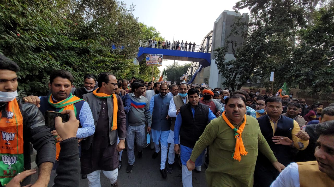 प्रदर्शन में दिल्ली प्रदेश प्रवक्ता श्री विक्रम बिधूड़ी, भाजपा के जिला महरौली श्री जगमोहन महलावत, जिला महामंत्री श्री बलबीर सिंह, निगम पाषर्द श्री राजकुमार करहाना व श्री दीपक जैन और भाजपा कायर्कर्ताओं सहित क्षेत्र की आम जनता मौजूद थी।