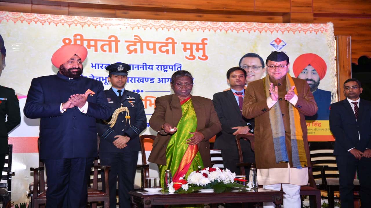 राष्ट्रपति ने कहा कि स्वयं पर्वतराज हिमालय और उत्तराखंड के शूरवीर लोग भारत माता के प्रहरी भी रहे हैं। हमारे वर्तमान सीडीएस जनरल अनिल चौहान जी उत्तराखंड के ही सपूत हैं। भारत के प्रथम सीडीएस जनरल बिपिन रावत जी भी इसी धरती की विभूति थे। गत 1990 के दशक में जनरल बिपिन चंद्र जोशी जी ने चीफ ऑफ आर्मी स्टाफ के रूप में भारत माता की सेवा की थी। कारगिल युद्ध में अपने प्राणों की आहुति देकर देश की रक्षा करने वाले मेजर राजेश सिंह अधिकारी और मेजर विवेक गुप्ता का बलिदान सभी देशवासी हमेशा याद रखेंगे।