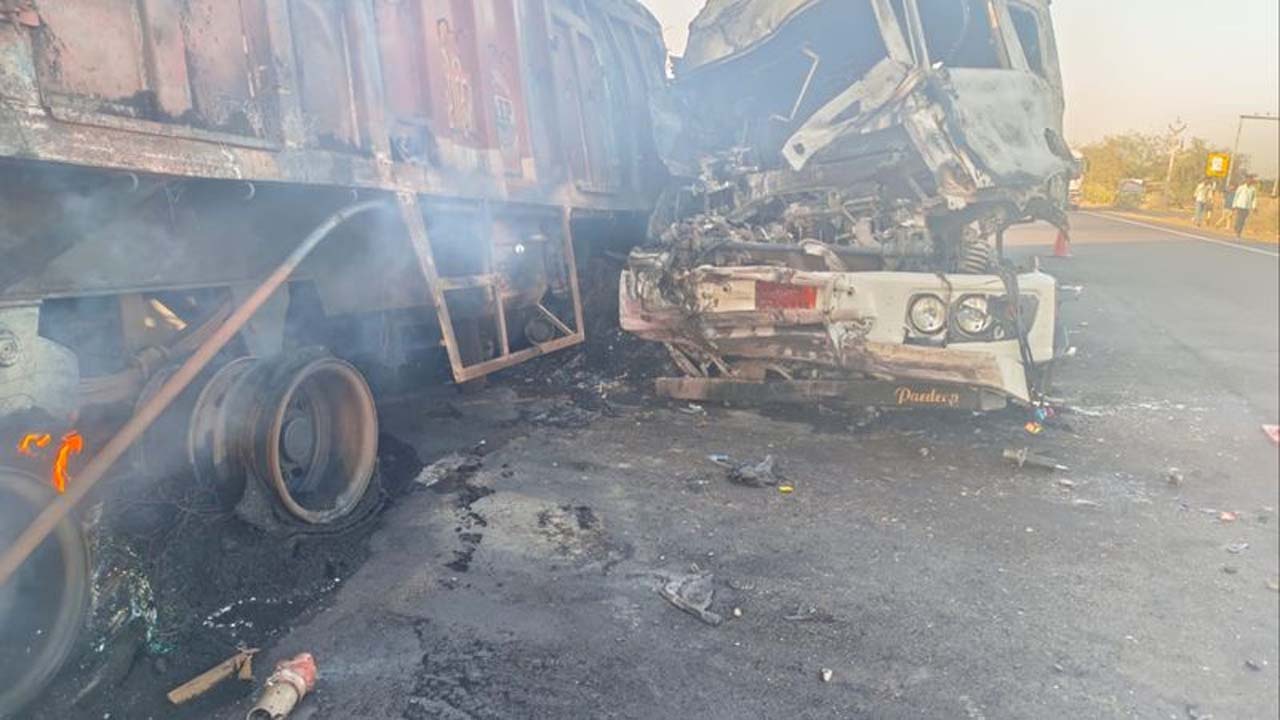 दो ट्रेलरों में टक्कर के बाद तीन व्यक्ति जिंदा जल गए
