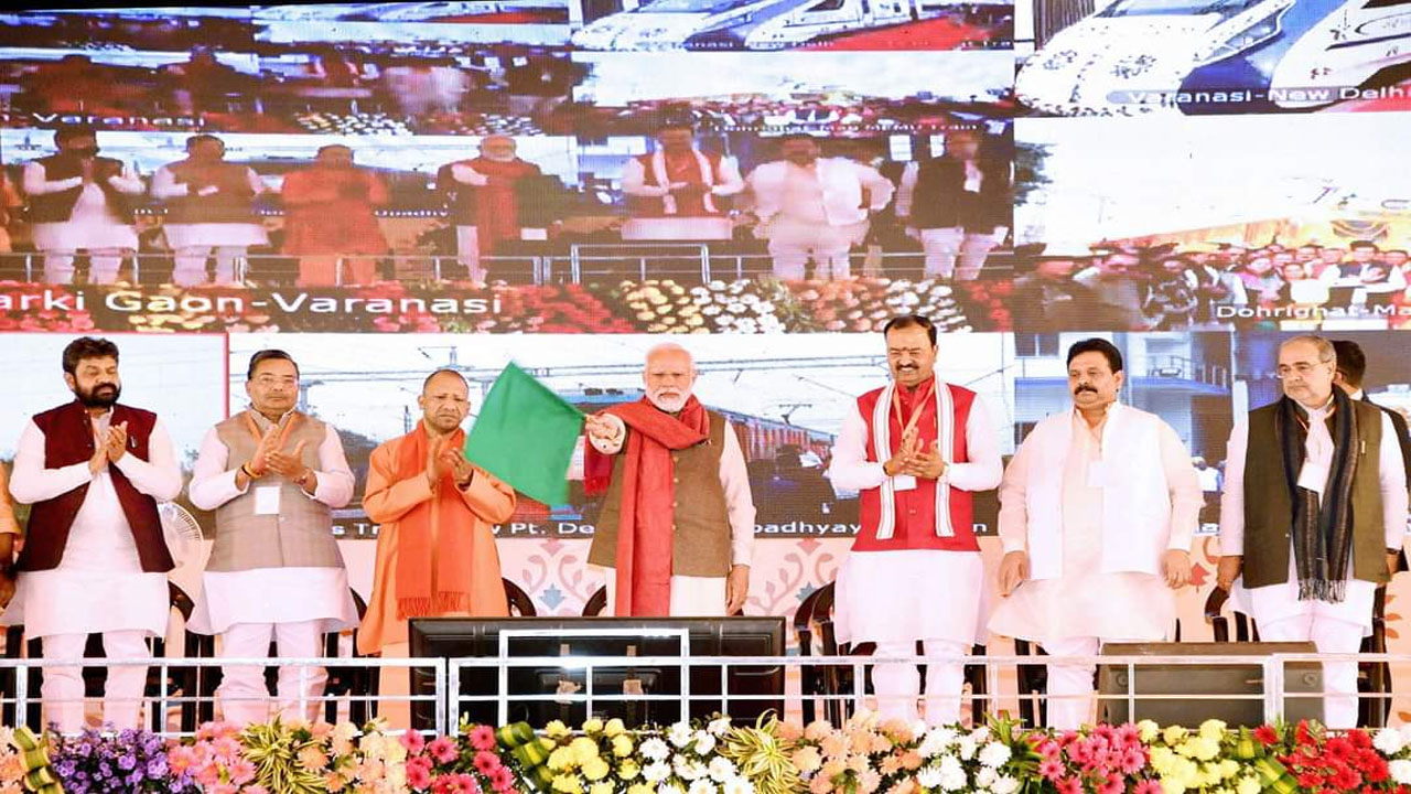 वाराणसी : नरेंद्र मोदी ने सोमवार को अपराह्न 2.15 बजे अपने संसदीय क्षेत्र उत्तर प्रदेश के वाराणसी जंक्शन के(कैंट) से आधुनिक सुविधाओं से सुसज्जित वाराणसी-नयी दिल्ली वंदे भारत एक्सप्रेस ट्रेन को हरी झंडी दिखा कर रवाना किया। गौरतलब है कि तीर्थ नगरी वाराणसी से राष्ट्रीय राजधानी दिल्ली के बीच चलने वाली यह दूसरी वंदे भारत एक्सप्रेस ट्रेन है। इसके साथ ही देश के विभिन्न रेल मार्गों पर चलने वाली वंदेभारत एक्सप्रेस ट्रेनों की संख्या 35 हो हो गयी है।