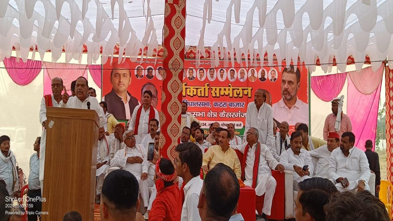 गोण्डा। कैसरगंज लोकसभा क्षेत्र में सपा के पूर्व विधायक बैजनाथ दूबे ने कार्यकर्ता सम्मेलन का आयोजन कर भाजपा सरकार पर हमला बोला और समाजवादी पार्टी (इंडिया गठबंधन) के उम्मीदवार के लिए समर्थन मांगा। कटरा बाजार रामापुर किसान डिग्री कॉलेज बड़गांव में आयोजित सपा के कार्यकर्ता सम्मेलन को कैसरगंज लोकसभा सीट से सपा प्रत्याशी भगत राम मिश्रा ने संबोधित किया। उन्होंने कहा कि हम किसी दबदबे के आगे झुकने वाले नहीं है और जनता इस बार भाजपा को सबक सिखाएगी। सपा में कार्यकर्ताओं का सम्मान सर्वोपरि है। लोकसभा क्षेत्र के पांच विधानसभा क्षेत्र में हमें पांच पांडव के रूप में साथी मिले हैं। इस बार चुनाव परिणाम बदलेगा। पूर्व विधायक बैजनाथ दुबे ने कहा कि भाजपा ने मतदाताओं को गुमराह करके वोट लिया है। इस बार सपा भाजपा को पटकनी देकर ही रहेगी। पूर्व मंत्री योगेश प्रताप सिंह ने कहा कि हम यह नहीं समझ पा रहे हैं कि आखिर दबदबा होता क्या है? यह जनता भाजपा का दबदबा समाप्त करके सपा को जिताएगी। सम्मेलन को सपा जिला अध्यक्ष अरशद हुसैन, राम भजन चौबे, पूर्व जिला अध्यक्ष आनंद स्वरूप उर्फ पप्पू यादव, मुकेश श्रीवास्तव, मसूद आलम खां, विनोद शुक्ला, पंकज गोस्वामी, पीडी मिश्रा, जसवंत मिश्रा ने संबोधित किया। इस मौके पर संजय शर्मा, दद्दन शुक्ला, कुलदीप श्रीवास्तव, राधेश्याम, नन्हे बाबा, सहित तमाम कार्यकर्ता उपस्थित रहे।